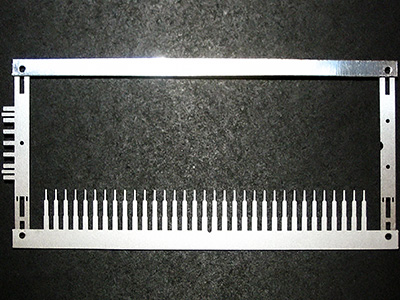 陣列、支架、連桿可組成一個(gè)整體,是VFD(真空熒光顯示屏)的重要部件,其作用是安裝柵網(wǎng)和燈絲的位置,其中的引腳則為安裝VFD的線路板??蓮V泛應(yīng)用于汽車VFD面板、家電VFD面板、 音響、VTR VFD面板、事務(wù)機(jī)用VFD面板、計(jì)量?jī)x器用VFD面板、 通信設(shè)備用VFD面板等領(lǐng)域。